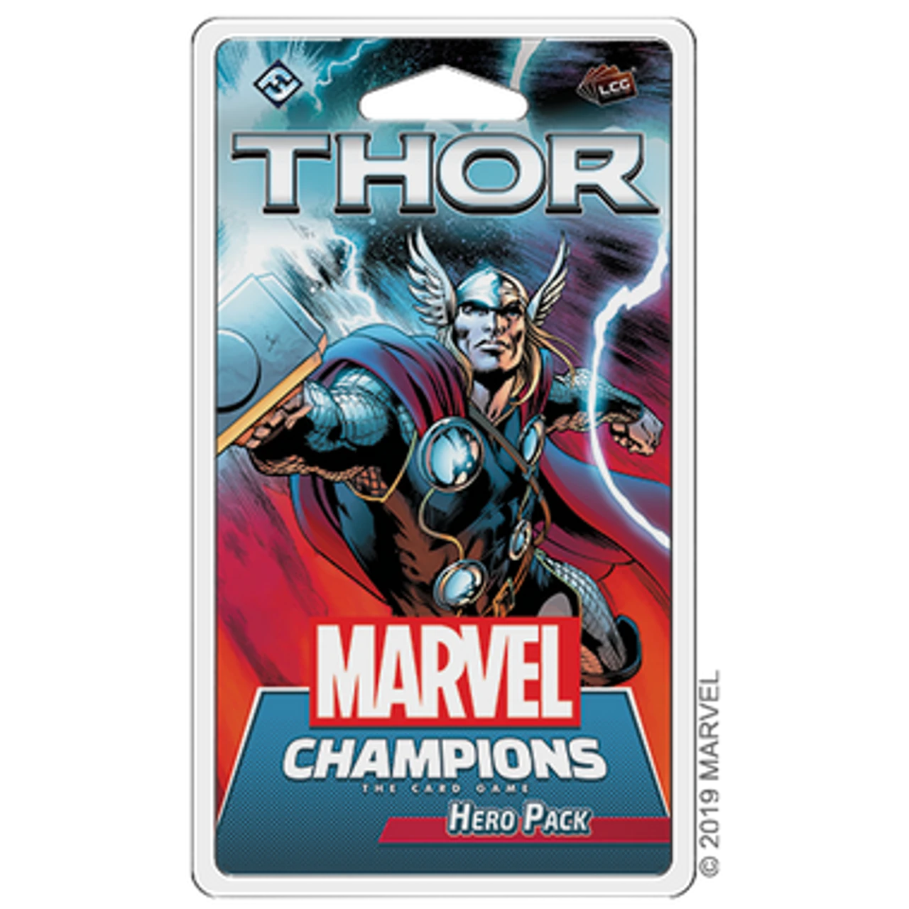 Like all Hero Packs, the Thor Hero Pack includes a fully-playable deck right out of the box that includes 15 Hero cards, 17 cards from the Aggression aspect, and 8 neutral cards. This deck allows you to harness the power of Thor, who is rewarded for engaging and dispatching villainous minions from the field!